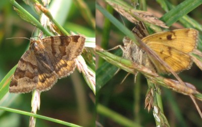 Górny to sówka Euclidia glyphica, a dolny to Loxostege sticticalis (Crambidae).
