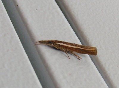 Kolejna porcja wachlarzyków. Tym razem spróbuję je sam zidentyfikowac i proszę ekspertów o ustosunkowanie się do moich oznaczeń. 755a - Catoptria falsella, 765a - C. perlella f. warringtonella, albo może jest to motyl z rodziny Coleophoridae? 767a - Chrysoteuchia culmellus (zlatany), 769a, 798a, 836a - wszystkie Agriphila tristella, 807a - A. selasella. Dziękuję z góry za pomoc. Piotr.