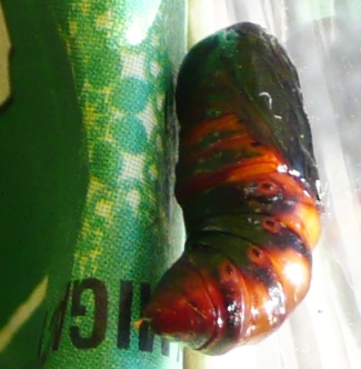 Niedźwiedziówka właśnie się przepoczwarzyła. Narazie jej nie ruszałem. Czy powinienem ją jakoś tak ustawić żeby motyl miał na co wyjść ?