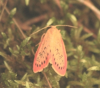 Dla sprecyzowania: wiem, że zdjęcie jest słabej jakości, a w związku z tym niewiernie oddaje kolory. Otóż ciemniejsze obwódki skrzydełek są koloru jaskraworóżowego, natomiast reszta ciała koloru jaskrawopomarańczowego.