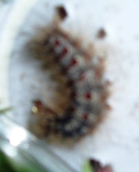 Załączam trzy zdjęcia o nieciekawej jakości :sad: Mam jednak nadzieję, że komuś uda się ją rozpoznać. Gąsienica ma około 6-7 cm, barwę czarno-białą oraz dwa rzędy niebieskich kropek przy głowie i czerwonych kropek na reszcie ciała. Poza tym jest cała włochata (włoski podchodzące pod brąz).