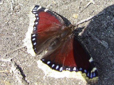 Witam. Dzisiaj, niecałe 30 minut temu, widziałem prawdopodobnie (99% ) rusałkę żałobnika - swoją drogą uważam, że to piękny motyl. Problem w tym, że nie jestem pewny, czy posiadał on rząd niebieskich plamek. Wszystko inne zdawało się pasować - jasna obwódka skrzydeł, siedział właśnie na dziko rosnącej jabłoni i nie widziałem innych osobników. Czy możecie wymienić motyle, które są do niego podobne - chciałbym się upewnić, czy nie popełniłem błędu.