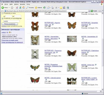 Wydaje mi się, że motyle nie są polskie, w każdym razie złowienie u nas np. Actias luna, czy choćby Polyommatus damon, Zerynthia polyxena i Saturnia pyri jest nierealne. Tym niemniej samo oferowanie do sprzedaży gatunków chronionych jest mocno nie na miejscu. Czyżby sprzedający o tym nie wiedział? A może to jest podpucha?