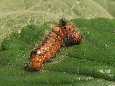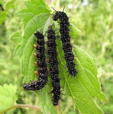Pierwsze zdjęcie to chyba gąsienica Inachis io, Rusałki pawik ;)
