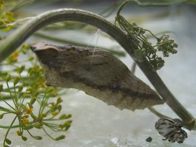 Czytałem gdzieś że można poczwarkę przetrzymać w lodówce, wtedy motyl wyjdzie z poczwarki wiosną...
