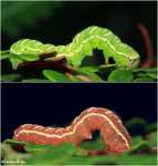 Dwie formy barwne gąsienic żerujących na tej samej paproci.